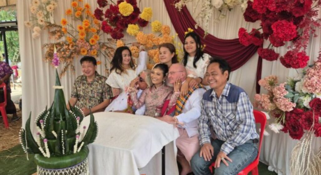 The ceremony took place in the northeastern Thai province of Buriram, where family members gathered to witness the unconventional union. The bride, Duangduan Ketsaro, formalised her relationship with two long-time partners — both of whom are close friends from Austria.