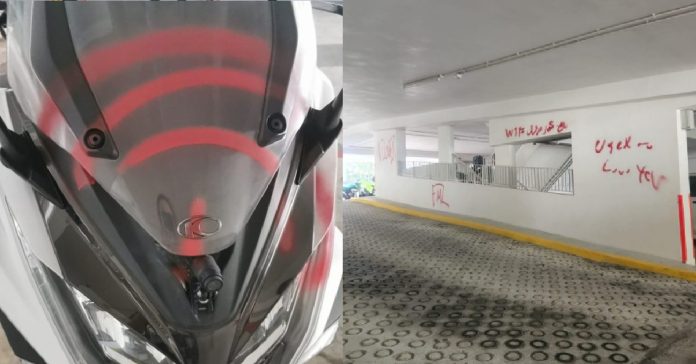 Facebook user Peter Gan shared photos of cars, motorcycles, and walls at a carpark in Punggol after they were vandalised. Here is what he said This happened last night or maybe this morning (not sure exactly) in one of the multi storey carpark at Punggol Bayview, Sumang walk. Multiple cars and motorbikes were affected and … Continue reading VEHICLES AT SUMANG WALK CARPARK VANDALISED, KENA SPRAY PAINTED