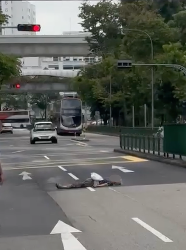 A woman was spotted lying motionless in the middle of a road in Jurong West, drawing concern from passers-by and motorists on the afternoon of March 25. The unusual incident unfolded along Jurong West Central 3, where traffic continued moving despite her presence on the road.