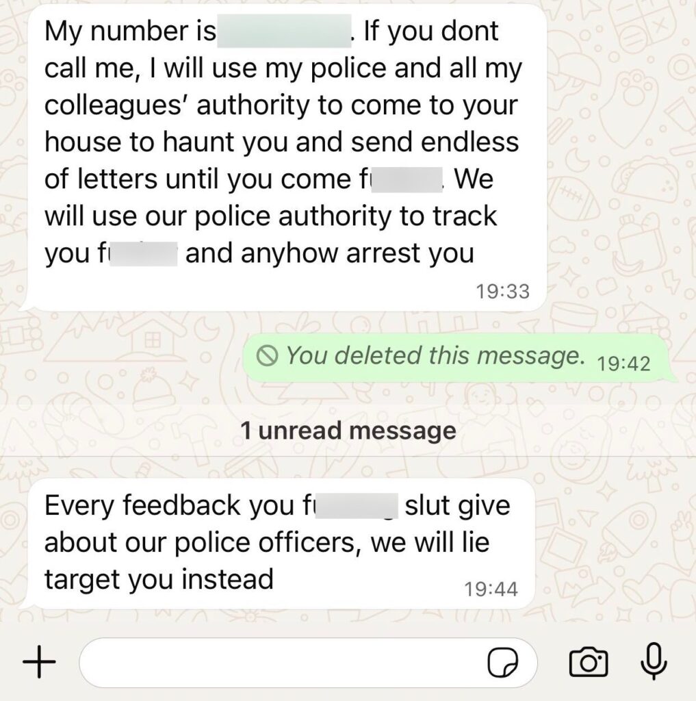The case first surfaced on 17 March when the online post gained traction among members of the public. The screenshots appeared to show an exchange between the suspect and another individual, during which she allegedly presented herself as a police officer.